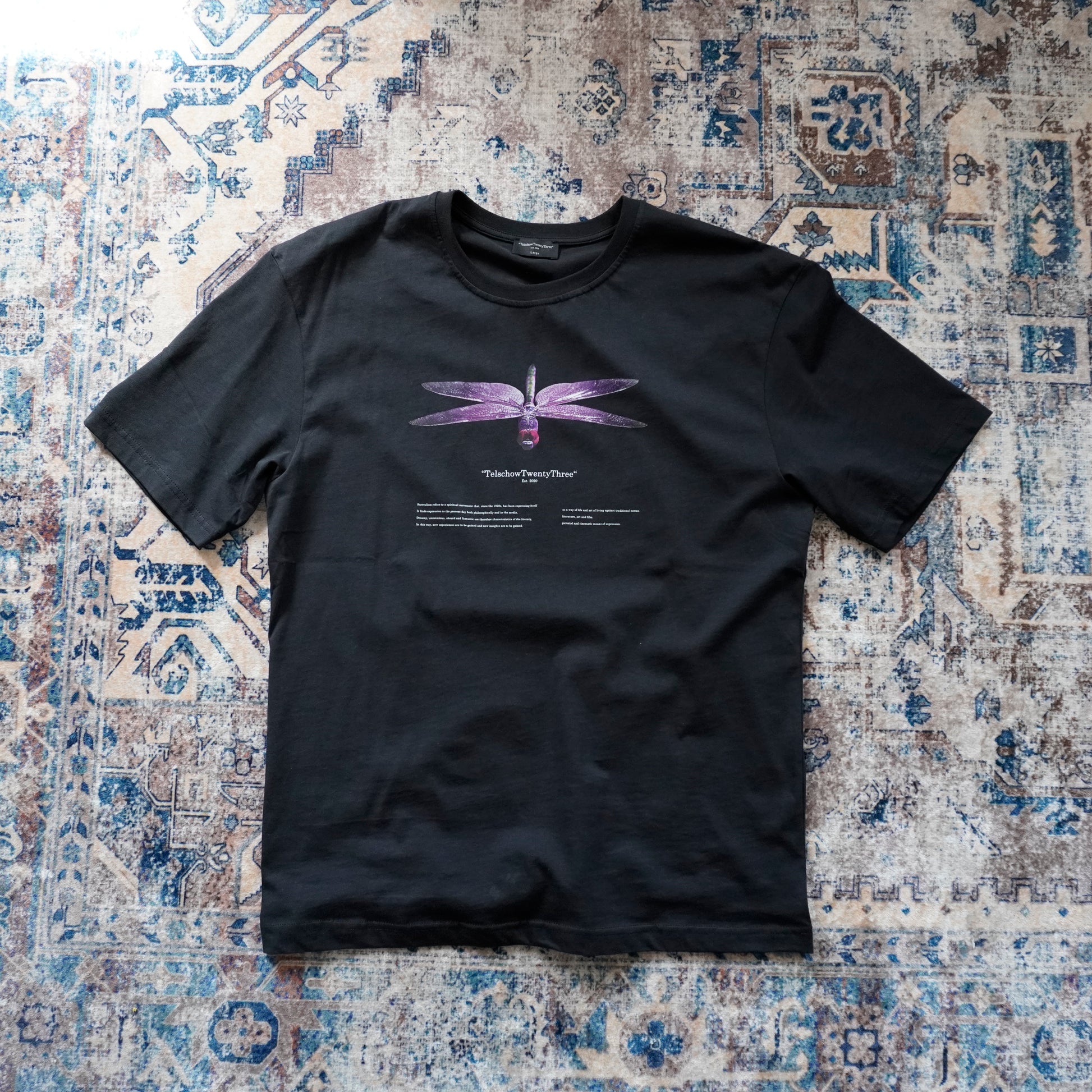 Die lilafarbige Libelle rundet jedes Allblack Outfit ab. Der Jetblack Farbton des Shirts ist einfach und gut zu kombinieren.