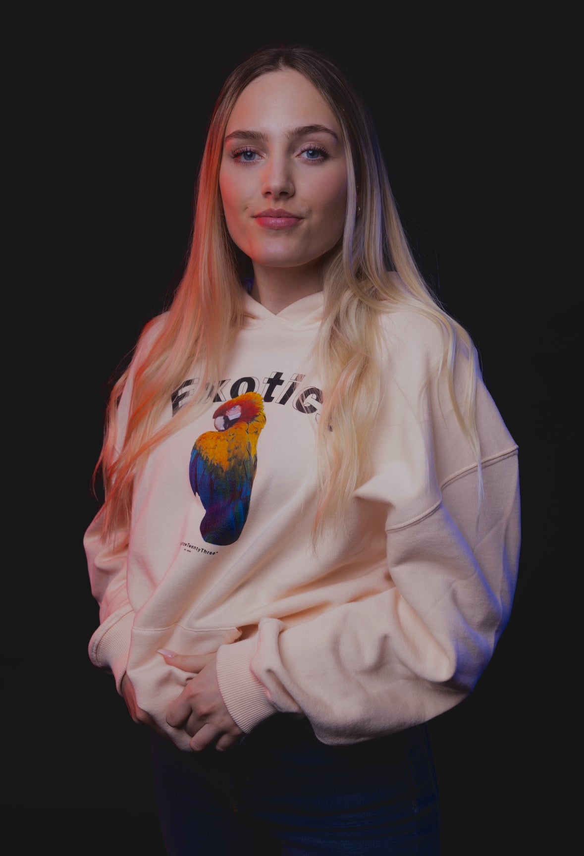 Sticht durch seinen auffällig farbigen Ara Papageien und dem passend gut getroffenen Vanilla Cream Farbton hervor.